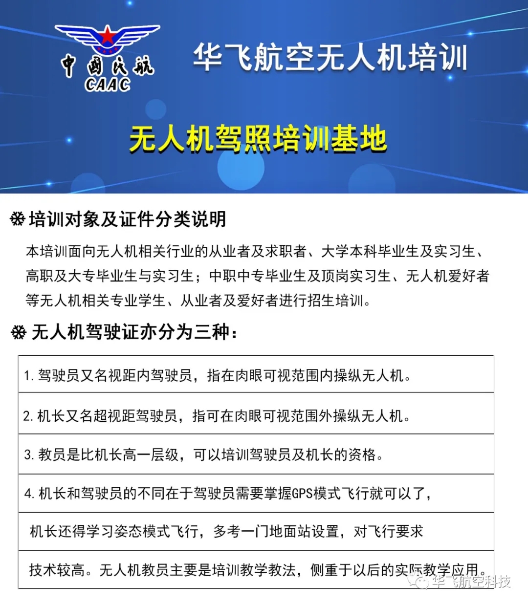 山東華飛航空第十二期中國民航局民用無人機執照培訓班即日起開始接受報名,2021年4月13號正式考試。由于近期報名、考試費用大幅增加,4月份之后報名參加考試,費用會有相應提高,請有需求的朋友抓緊報名參加考試。