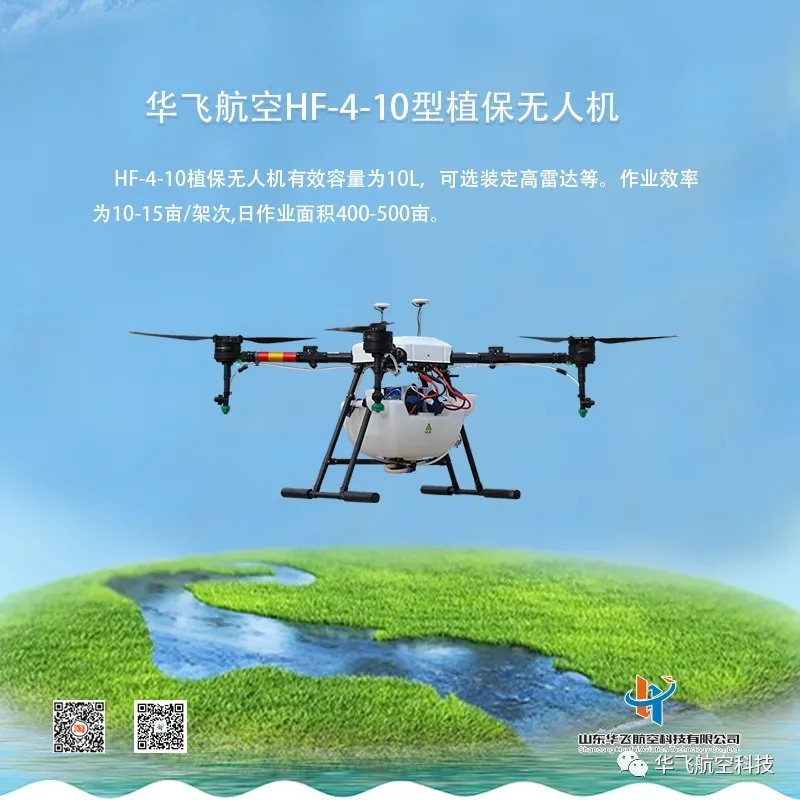 山東華飛航空科技全新推出HF-4-06型無人機,該機型植保無人機是專門針對丘陵山區、園林、小面積種植園區輕量級作業需求設計的一款小型多用途植保無人機。藥箱有效容量為6L,每小時可植保作業50畝左右,機身輕便可折疊、易攜帶,功能強大且具有二次開發應用優勢。