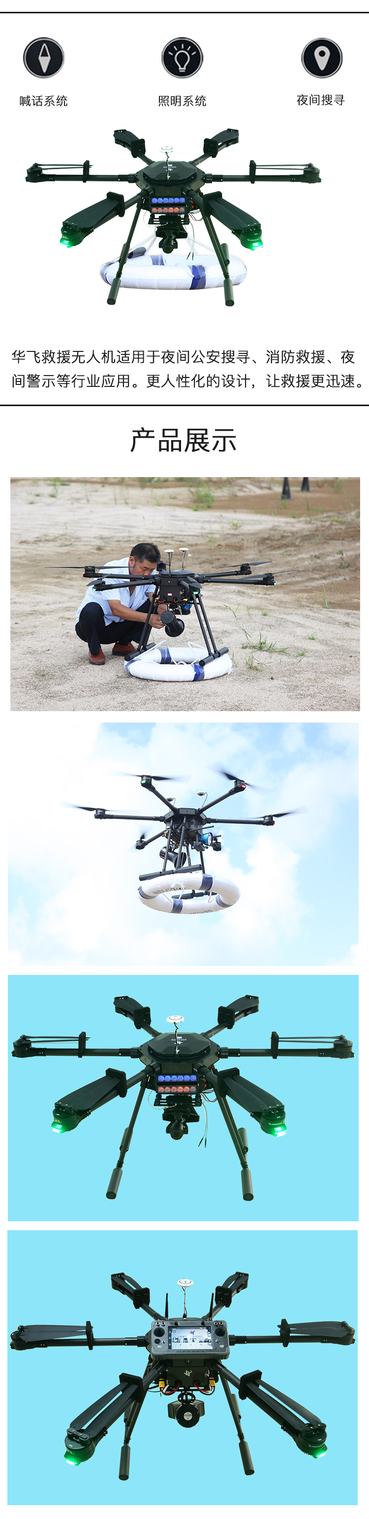 應急搜救:可快速到達車、船、人無法到達的山區(qū)、海面上空進行更大范圍搜索目標區(qū)域 迅速定位受困人員,